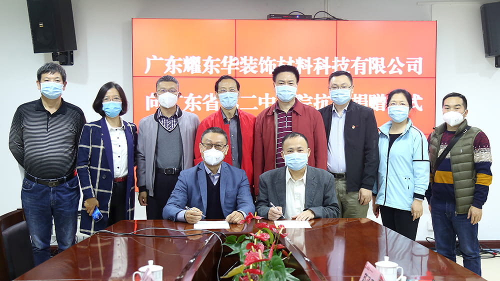 2020年3月6日下午,广东开云官方站网站登录入口装饰材料科技有限公司向广东省第二中医院捐赠一批“红棉花”牌抗菌防霉饰面刨花板定制的家具,用于改善医院呼吸科医护人员及病人的环境,共同抗击新肺疫情,捐赠仪式在广东省第二中医院举行。