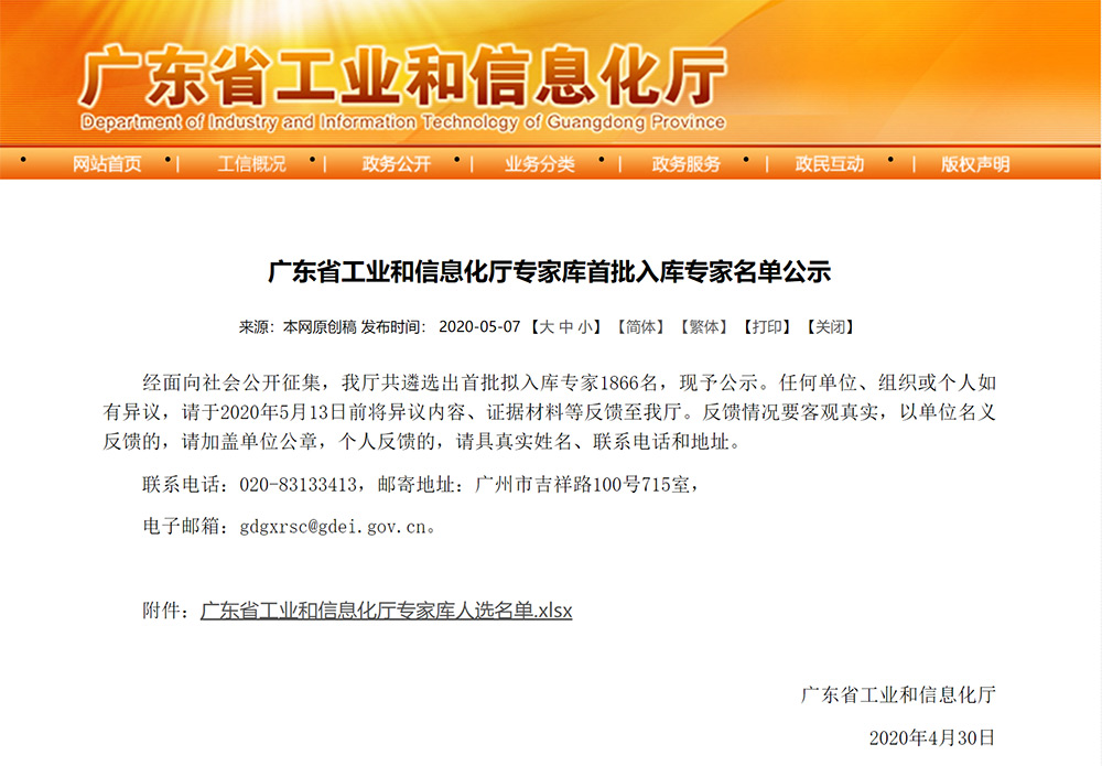 2020-05-30开云官方站网站登录入口公司曾敏华董事长首批入库“广东省工业和信息化厅专家库”